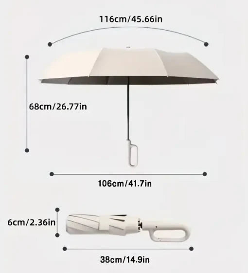Imagina un paraguas que nunca perderás porque se mantiene firmemente sujeto gracias a su clip especial.